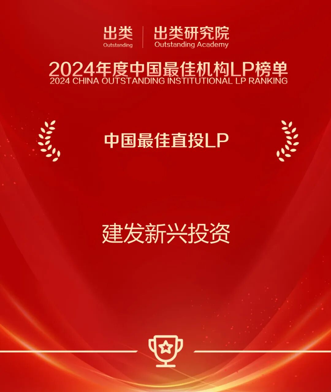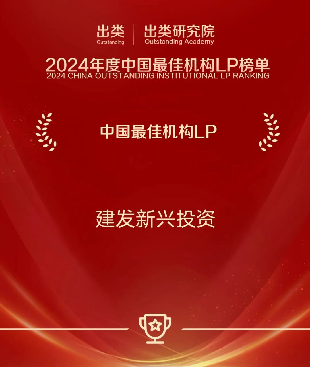 4月25日,出类研究院发布了「2024年度中国最佳机构LP榜单」,建发新兴投资获评“2024年度中国最佳机构LP TOP20”、“2024年度中国最佳直投LP TOP10”。