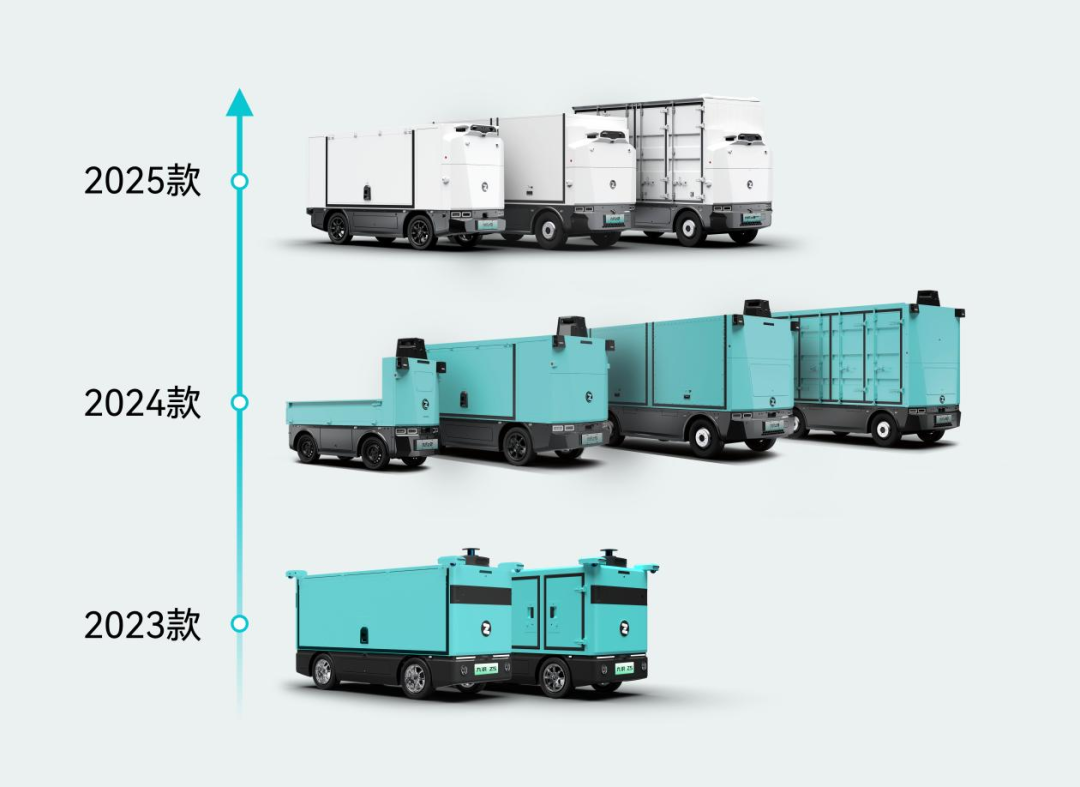 基于对城配场景的深度理解,九识智能持续引领行业技术创新,在短短两年内,产品实现了多次迭代: